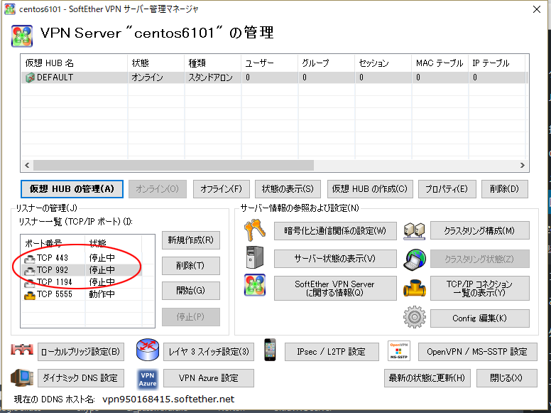 今回の場合は、Centos のサーバー機をVPN Server とします。
