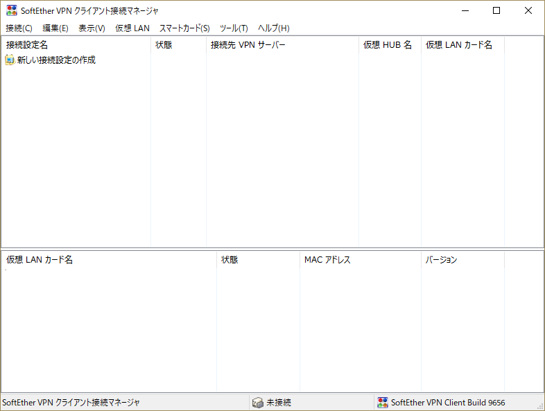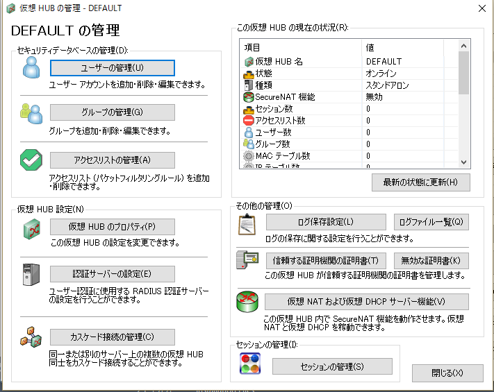 管理画面が開きます。ここで設定するのは、仮想HUBの管理と、ローカルブリッジの設定です。