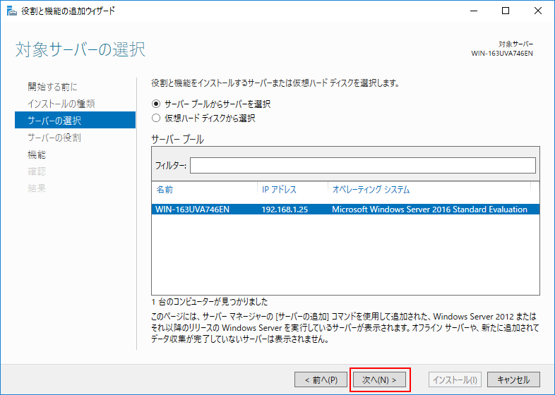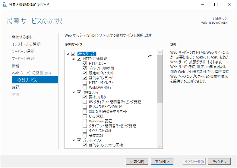 サーバー一覧が表示されたら、WEBサーバーをクリックすると、ウィザードが開きます。
