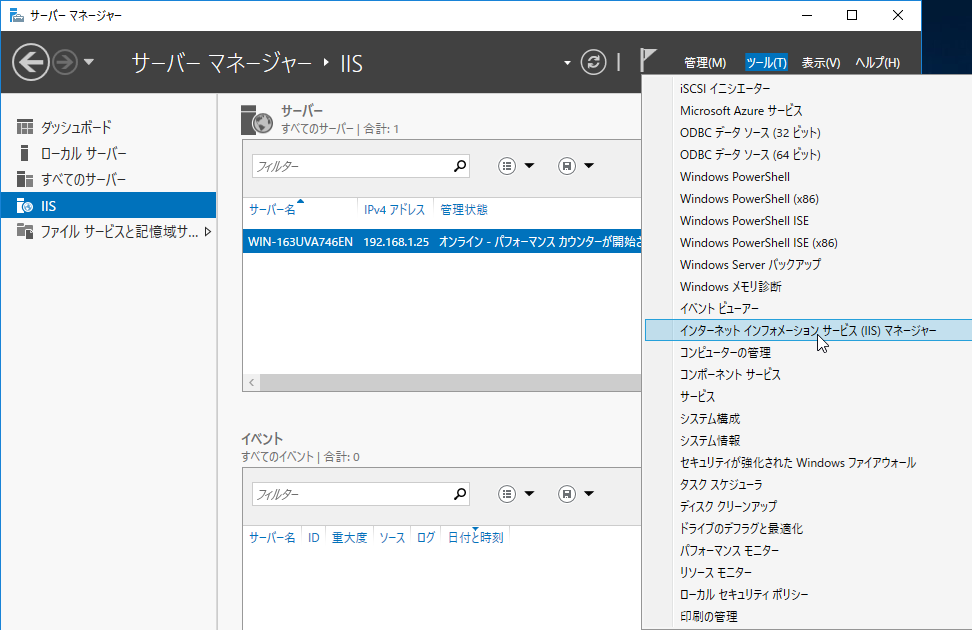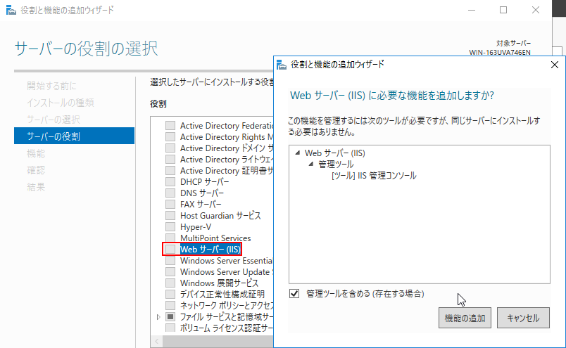 次に、Webサーバーを構築しますが、IISはWindows Serverに内蔵されているので、設定するだけで簡単にWebサーバーを構築できます。