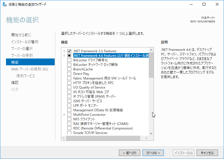 次に、WEBプログラムとして、ASP.NETをインストールします。