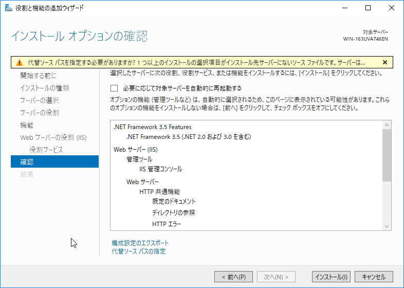 Windows Serverをインストールしただけのコンピュータに、最初にISSをインストールする場合、ドキュメントなどを置く場所が存在しないので、警告がでます。