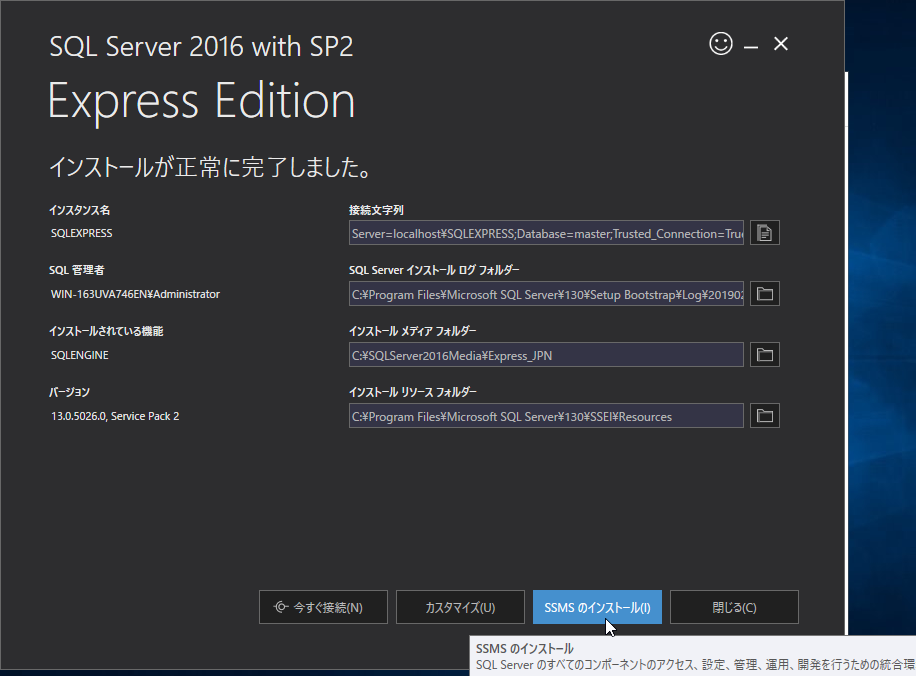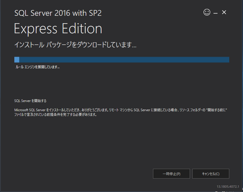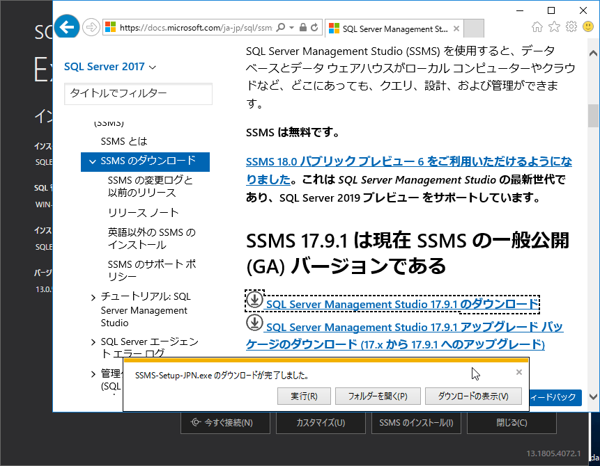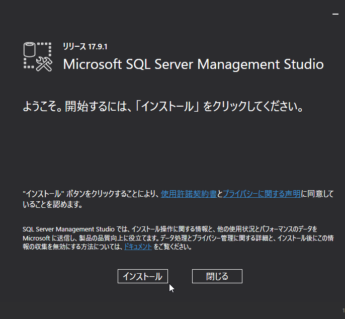 SSMS-Setup-JPN.exe がダウンロードされているので、実行します。