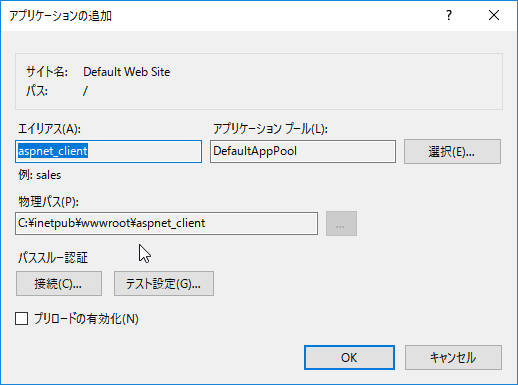 まずは、ASP.NETが使用するディレクトリをIISに指定します。