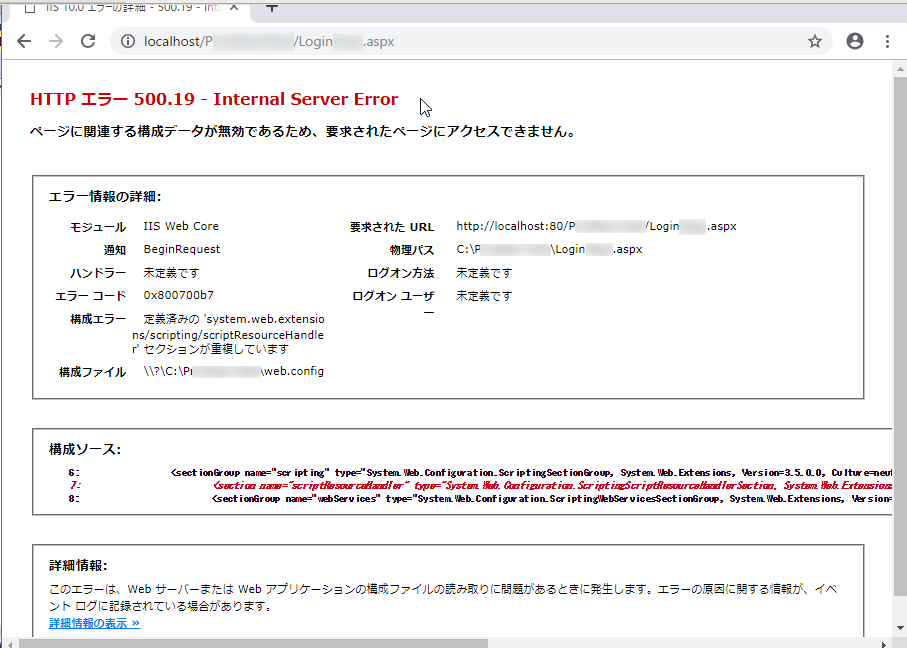 今のASP.NETでは必要のない記述がいくつか入っていたため、エラーになりました。