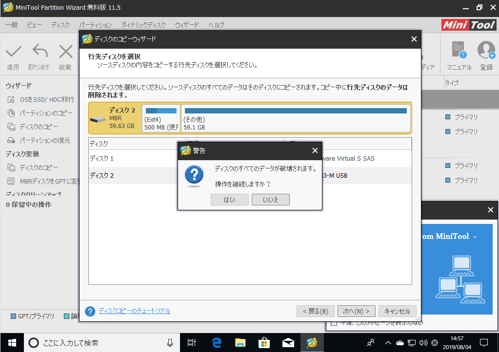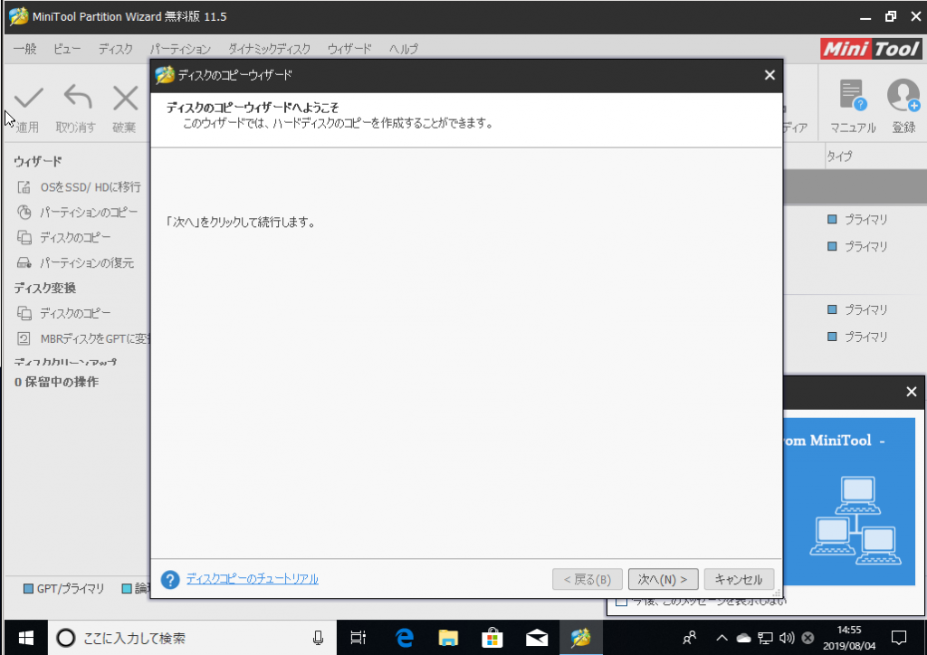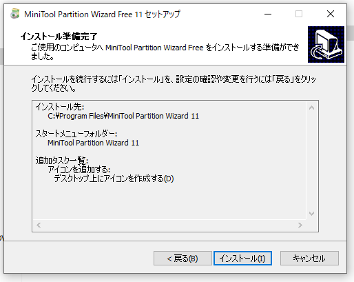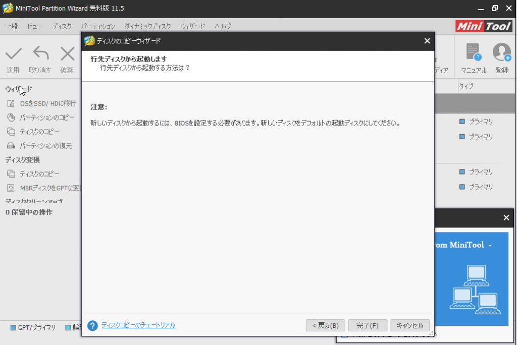 そして、このような指示をすると、 MiniTool Partition Wizard は親切な設計になっているようで