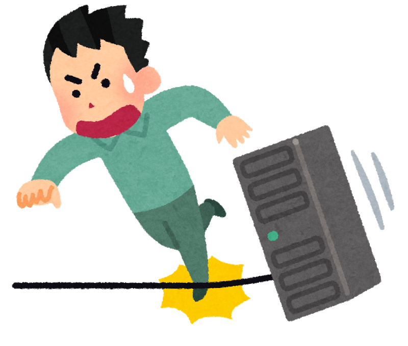 また、いらすとやさんのイラストのようにLANケーブルを引っかけて、本当にパソコンをデスクから落とした者もいます。