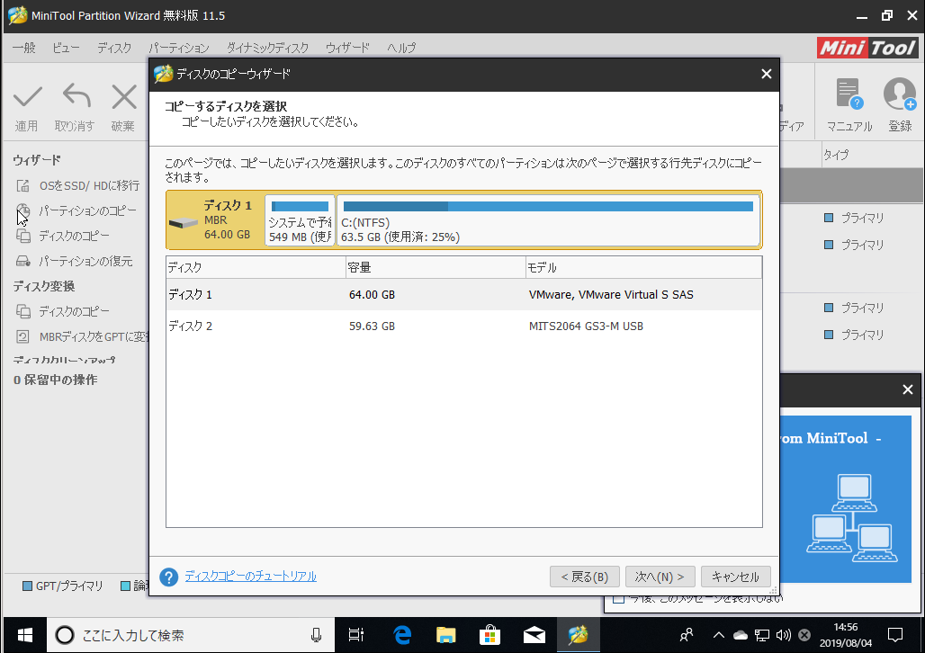 この「ディスクのクローン」が作成できるパーティションの操作ソフトをご紹介いただきましたので、それを使ってみましょう。