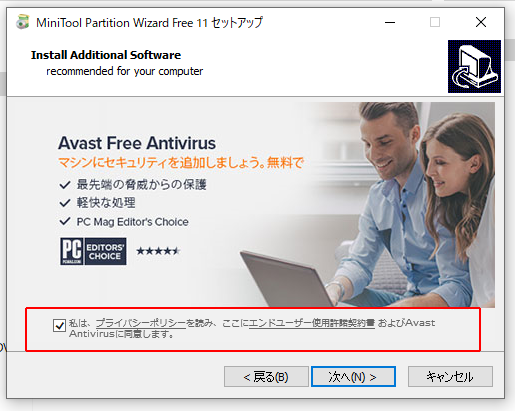 必ず、同梱ソフトのチェックは外すようにしましょう。