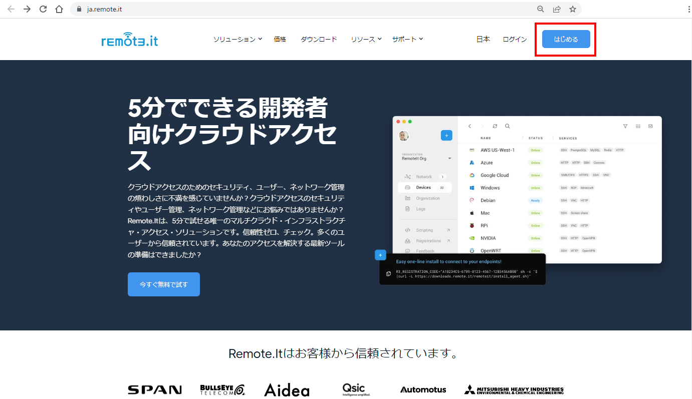 そこで、今回はremote.itというサービスを使用します。
