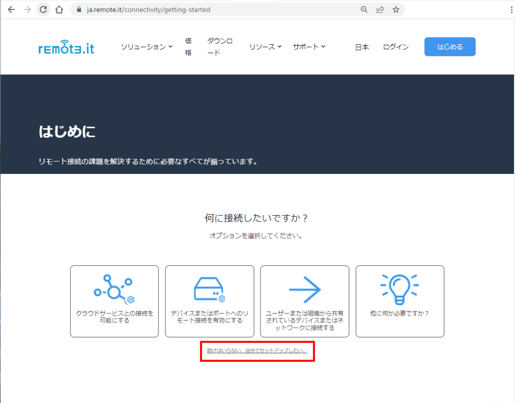ブラウザでremote.itのサイトに接続します。