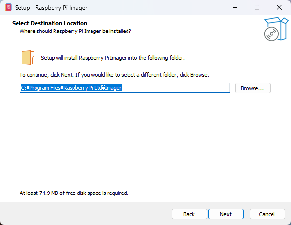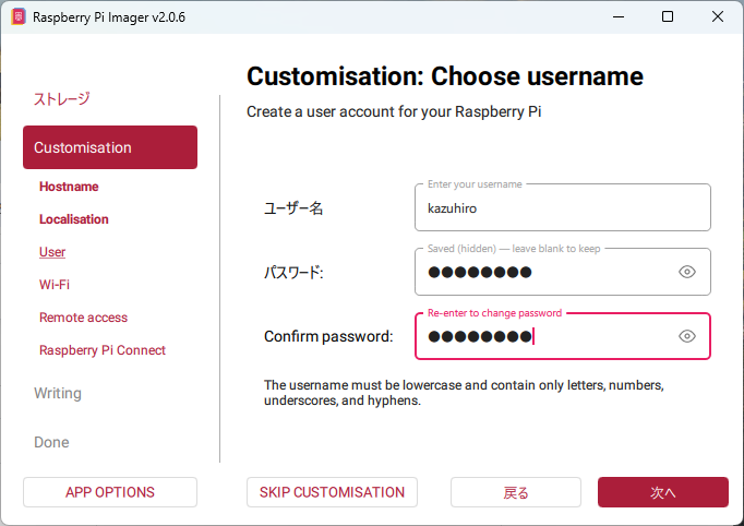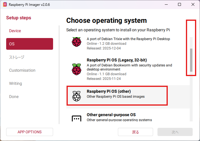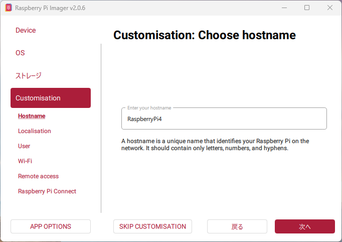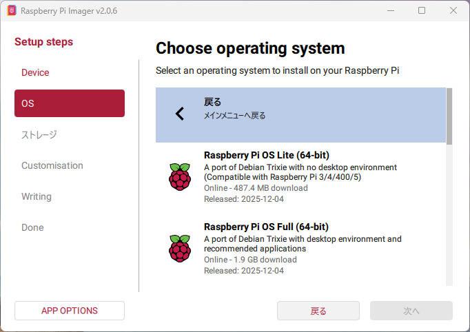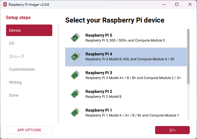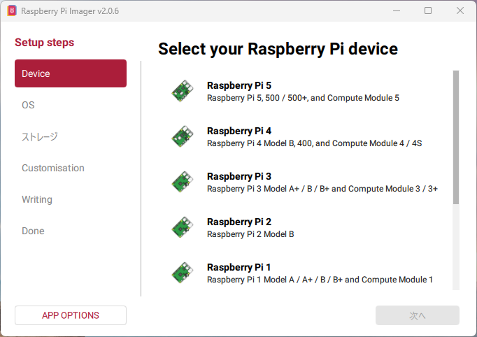 Raspberry Pi imager から、Raspberry PiにOSをセットアップ