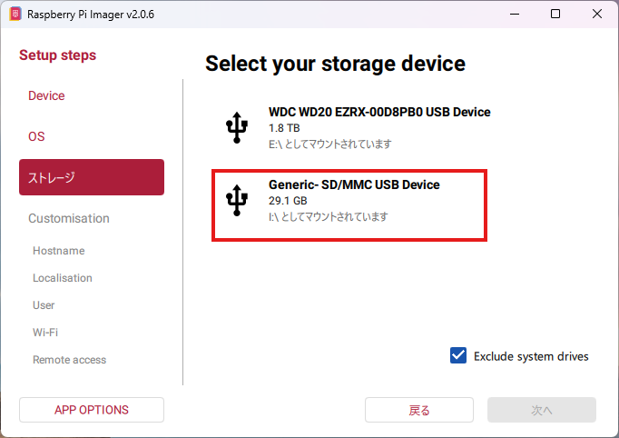 本当にRaspberry PiのOS用のストレージですか? 間違って外付けHDDや、別のストレージを指定していないですか?