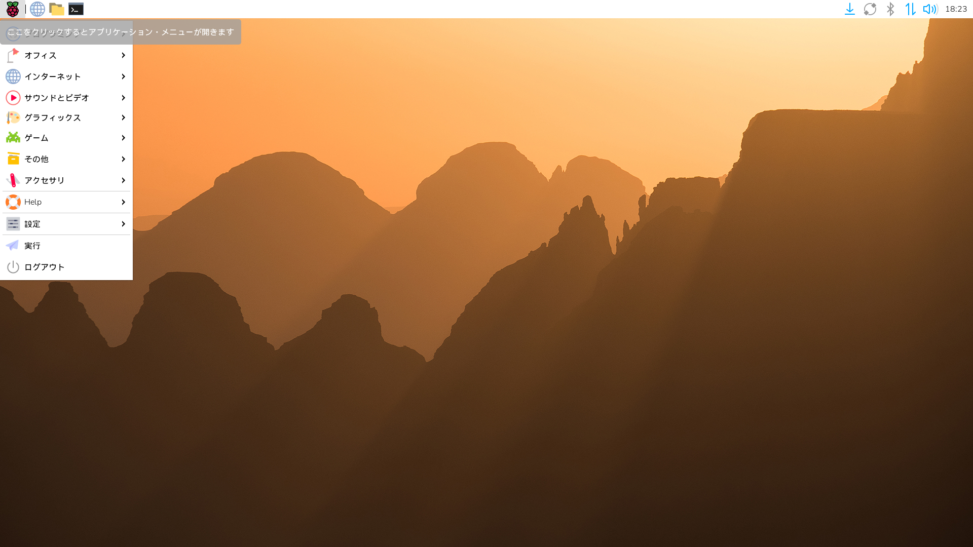 OSのセットアップの際、ローカリゼーションの設定はしましたが、このように表示が英語なので日本語化します。