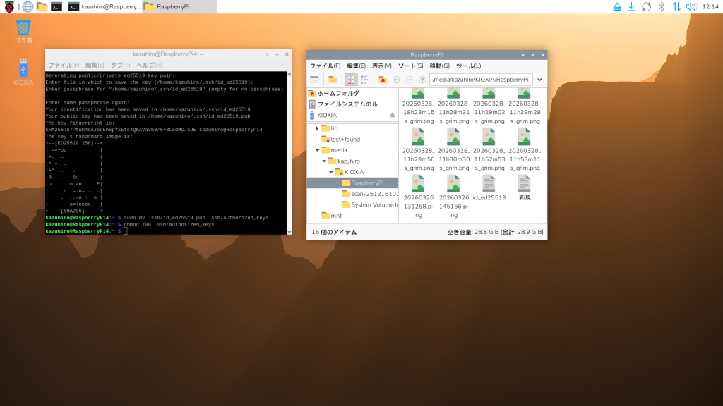 これからは先ほどRaspberry Piからコピーしてきたキーファイルが無ければ、ログインする事ができません。