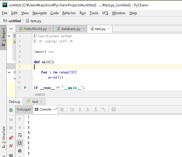 今回の場合は、データベースに接続し、Pythonの実行ファイルのpyと同じ場所のCSVを探して、それを読み込んでいます。
