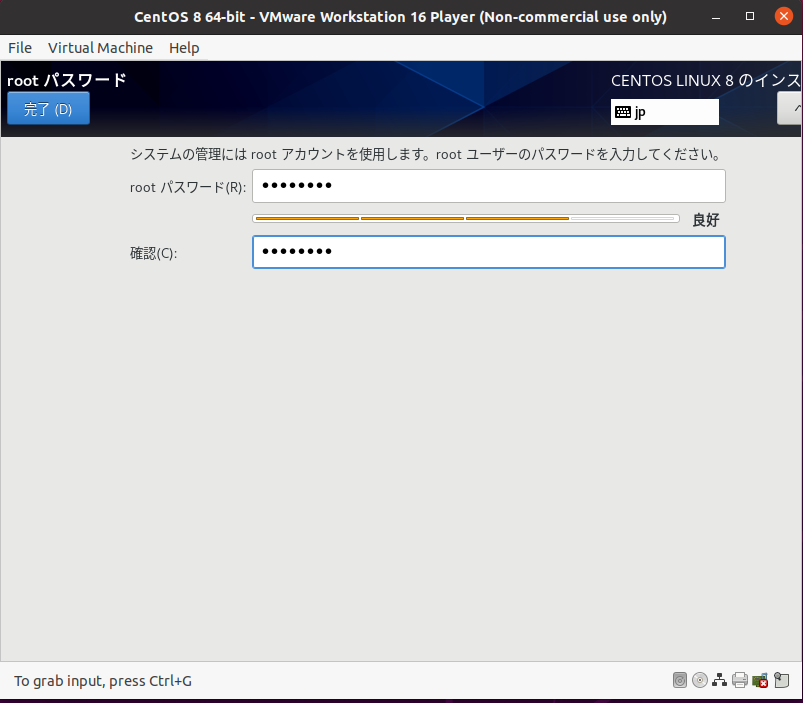 当然ですが、これは仮想マシンを使ってのテスト機で、実務に使わないため、簡単なパスワードですが、実際に使用するときはもっと複雑なものである必要があります。