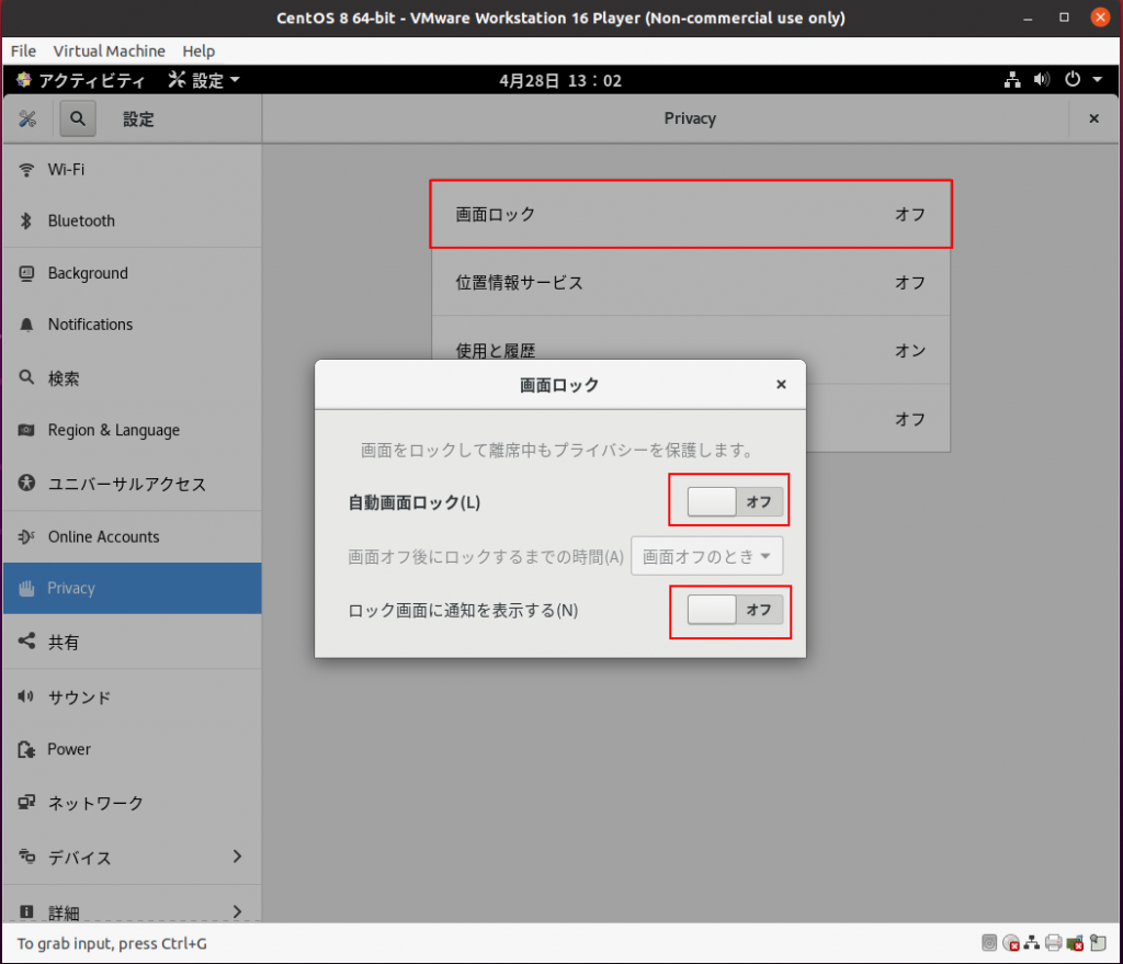 一番最初の起動時は、初期設定があります。入力や言語などを設定します。プライバシーをオフにする以外は、ほぼデフォルトです。