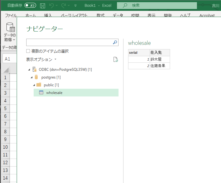 インストールとデータソースが完了すれば、ExcelなどにODBCでデータを取り出す事ができます。