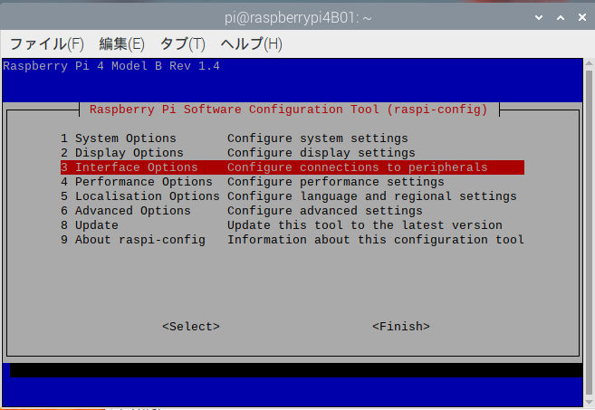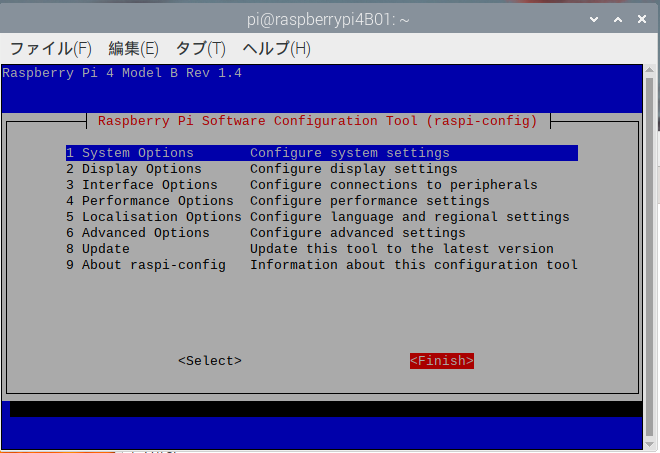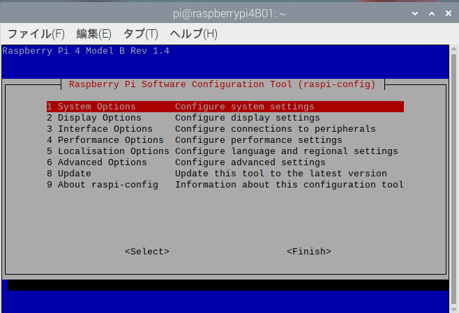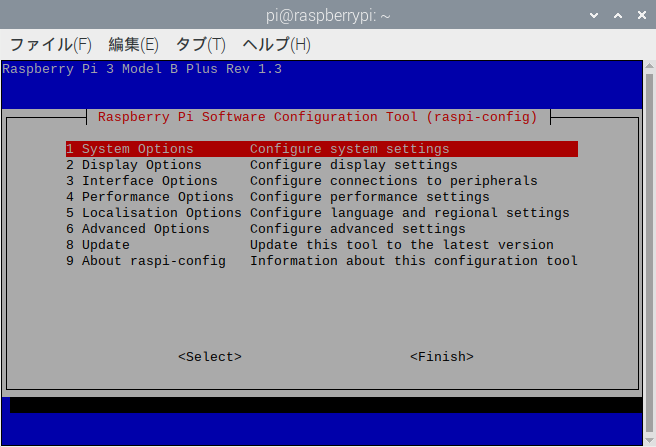 Raspberry Piのメインメニューから、設定>Raspberry Piの設定を選びます。