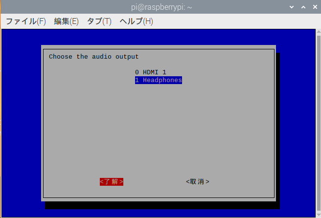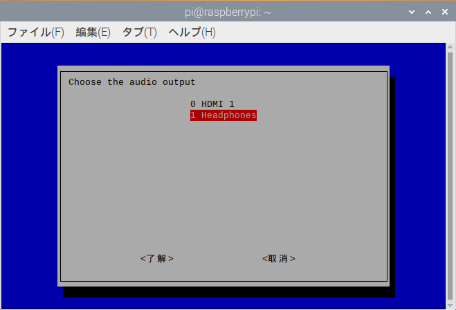 スピーカージャックから音を出すには、Raspberry Piの端末画面を出し、
