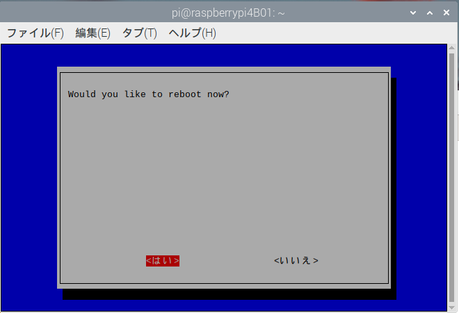 再起動しないと設定が反映されません。他に作業していなければ「はい」で即再起動。他になにかしている場合は「いいえ」で抜けます。