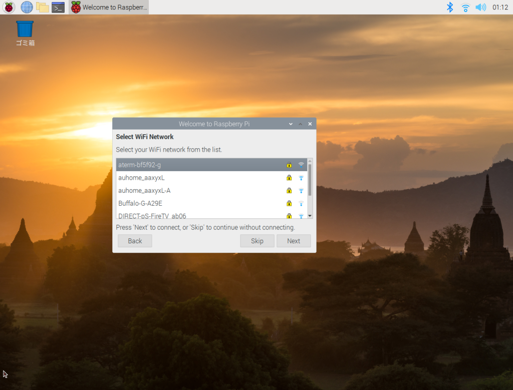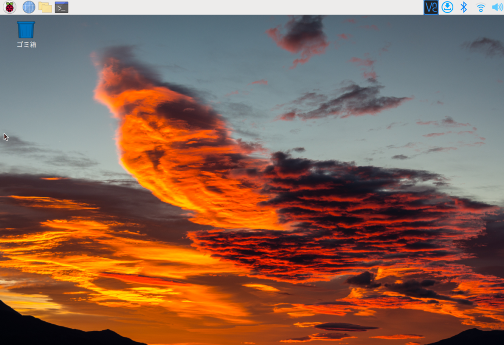 この状態で書き込みを押し、完了後、SDカードを Raspberry Pi にセットすると、初回起動設定は表示されず、そのままデスクトップが表示されます。