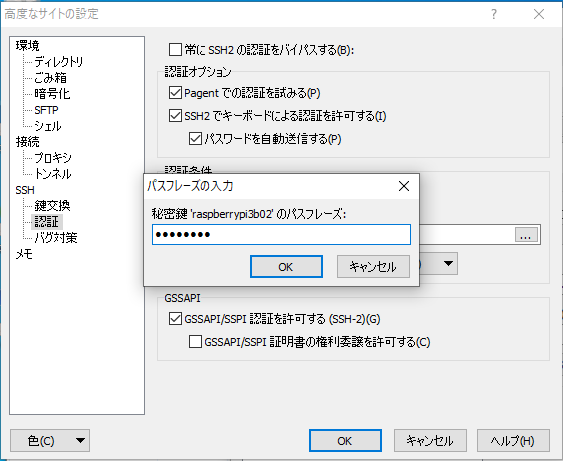 パスフレーズは、鍵作成 で入力したパスフレーズです。