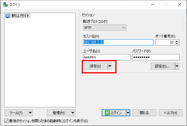 どのコンピュータの鍵なのか、判るような名前をつけて保存します。