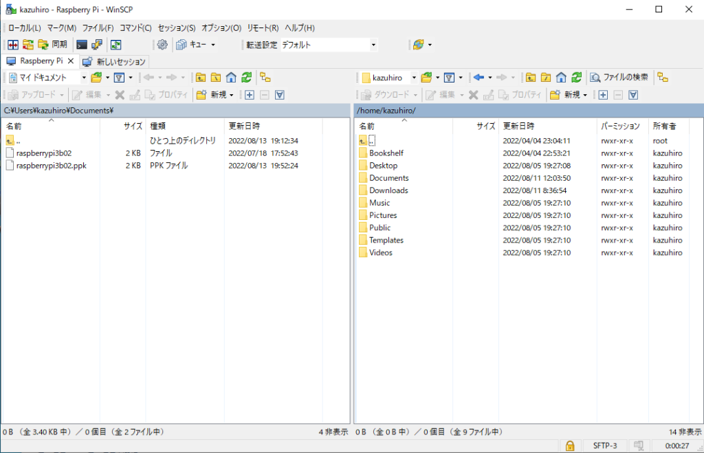 コマンドでも可能ですが、便利なのでWinSCPを使用します。
