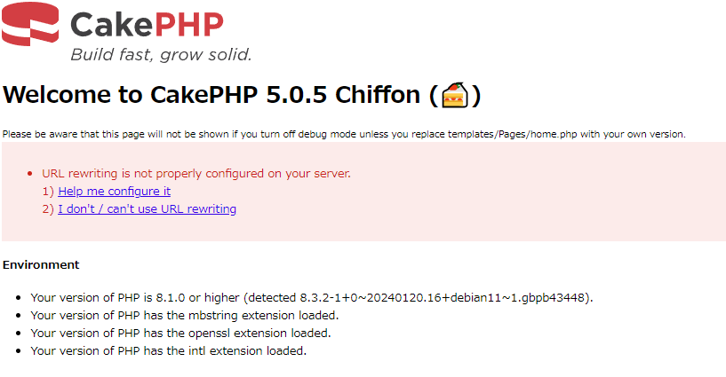 エラーがなくなり、無事にCakePHPがインストール出来たようです。