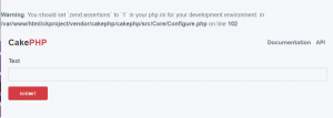 Warning: You should set `zend.assertions` to `1` in your php.ini for your development environment. in /var/www/html/ckproject/vendor/cakephp/cakephp/src/Core/Configure.php on line 102