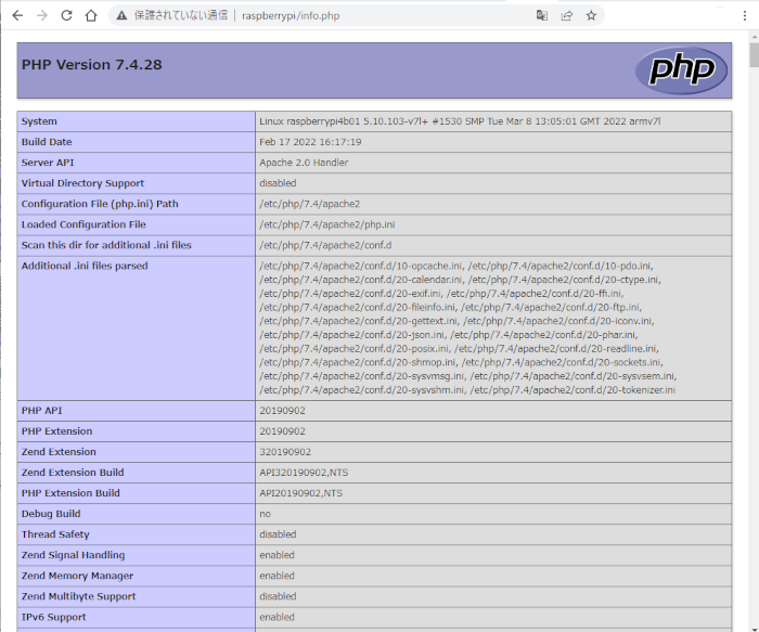 http://[ラズベリーパイのホスト名]/info.phpで呼び出します。