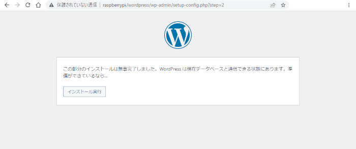 データベースとの通信ができたとの表示になりますので、インストールを実行します。