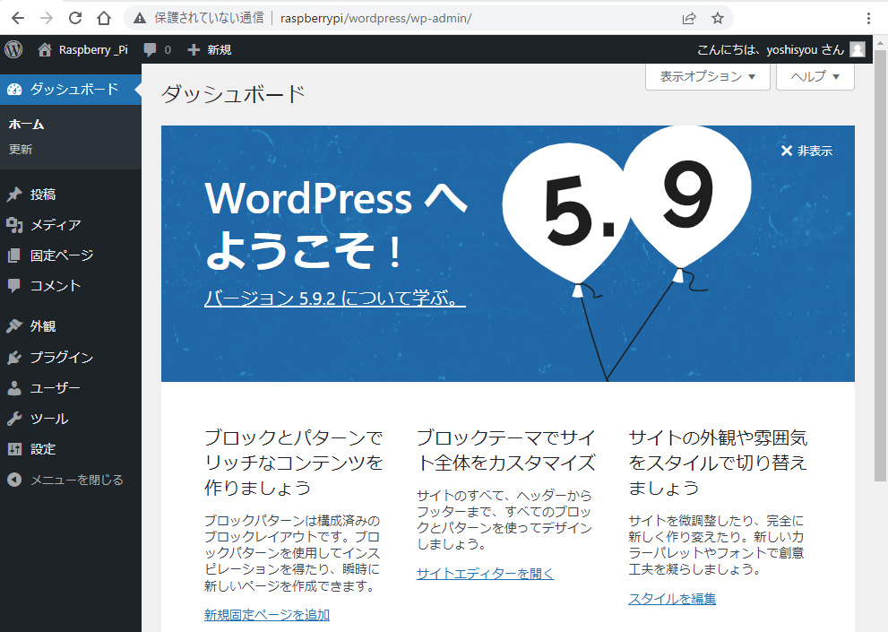 データベースが出来たら、WordPressを起動します。
