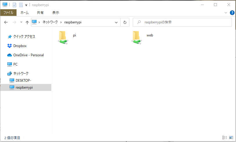 \\[ラズベリーパイのホスト名]でRaspberry Piに接続すると