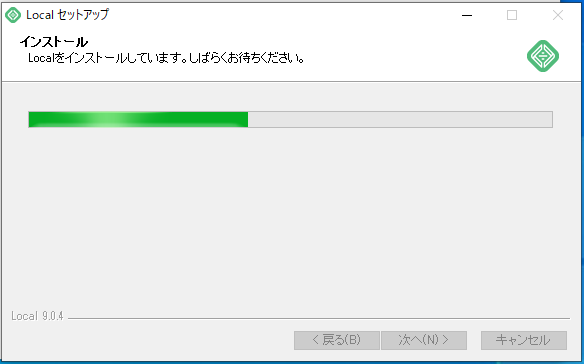 「インストール」ボタンを押すと、LocalWPのインストールが始まります。