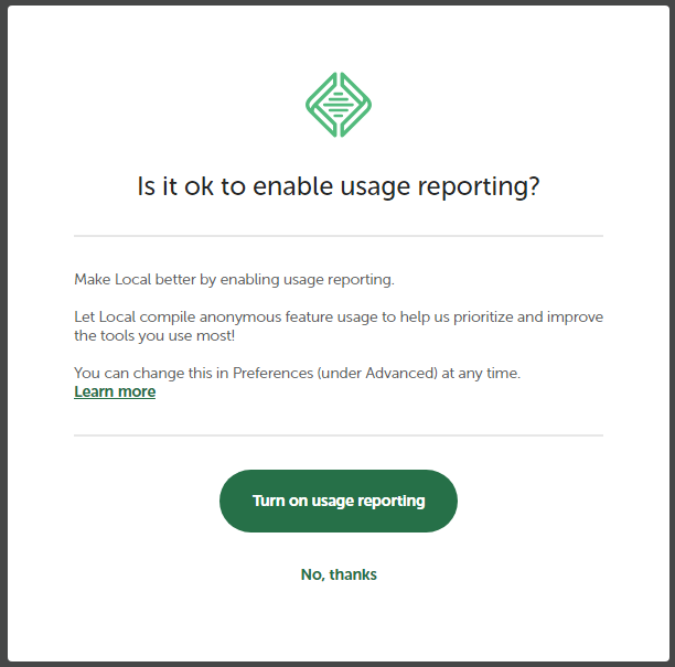 ローカルで匿名機能の使用状況をコンパイルして、最もよく使用するツールの優先順位付けと改善に役立ててください。