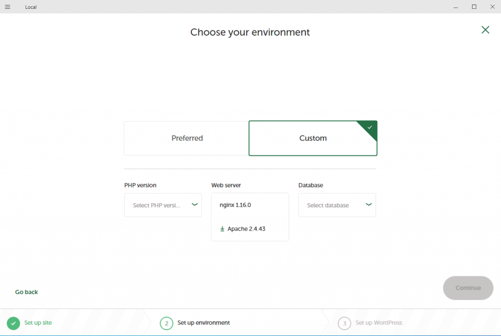 Preferred(優先)だと、LocalWPの既定環境になります。
