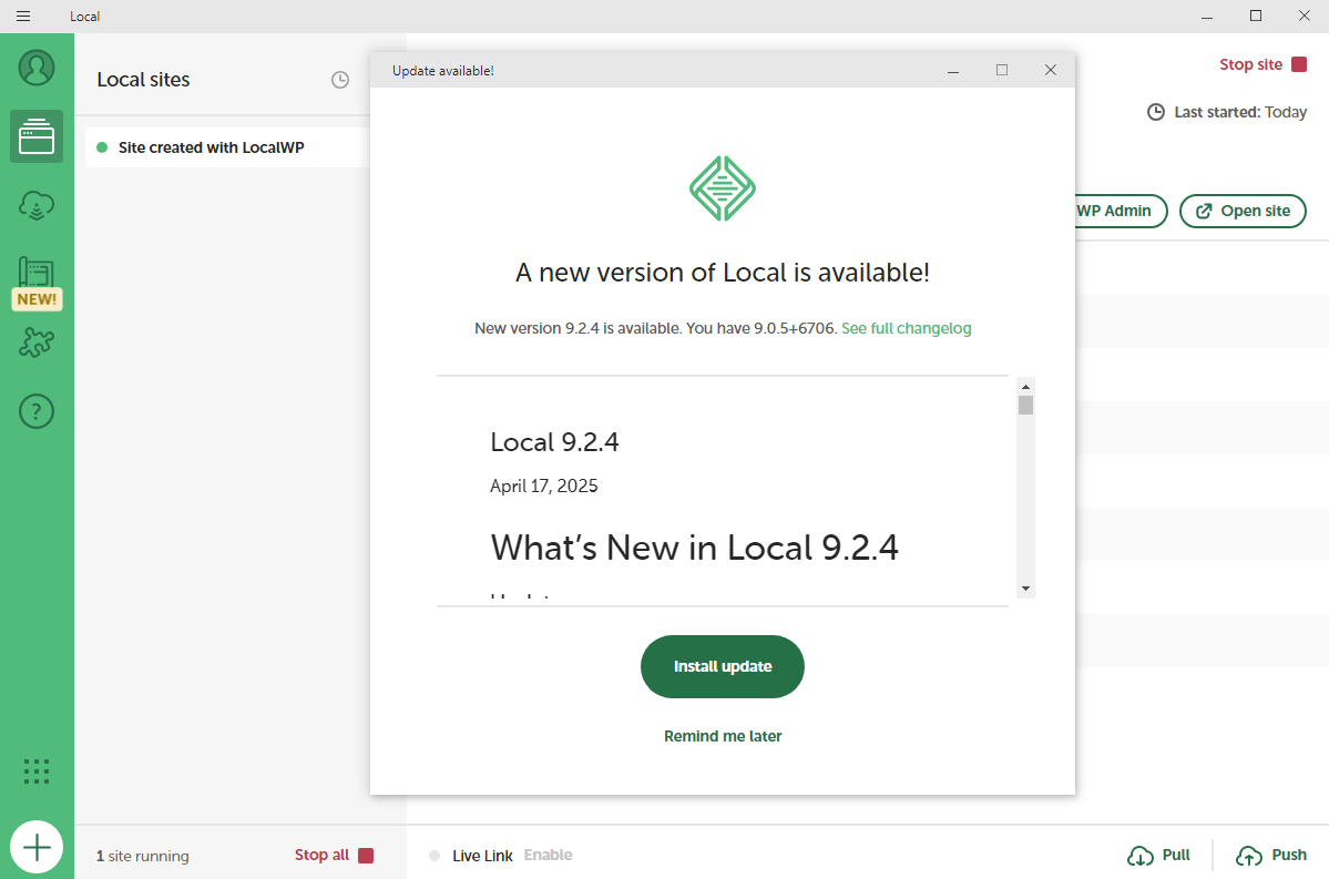 LocalWPを起動すると、以下のようなアップデート案内が表示されることがあります:
