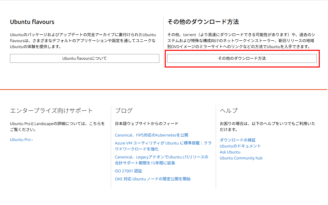 Ubuntuのダウンロードサイトは、LTS版と最新版しか表示されていないため、執筆時点、2025/10/14の時点では24.04より古いものが見えません。