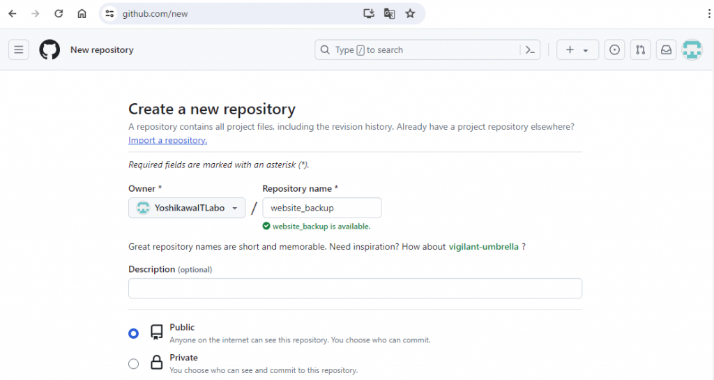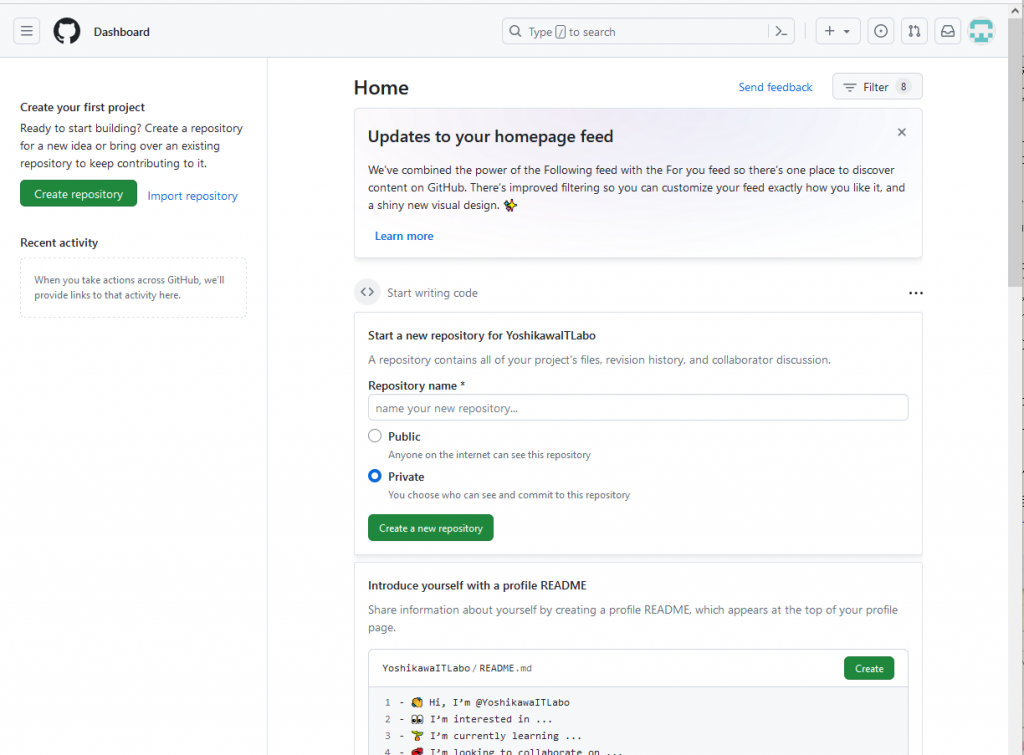 非公開リポジトリにすることは可能なようですが、今回は触れません。