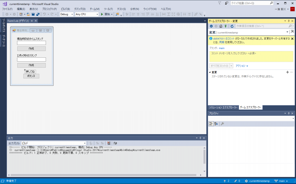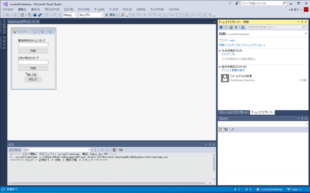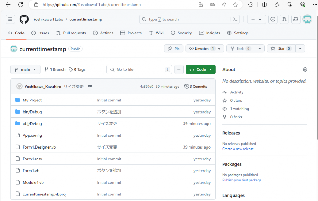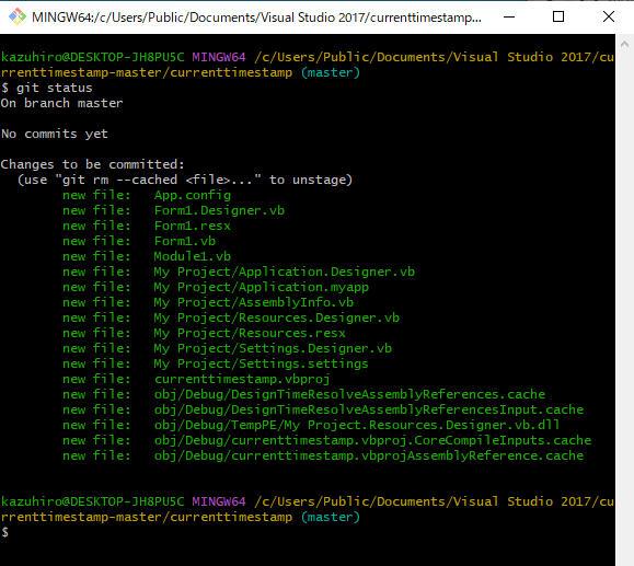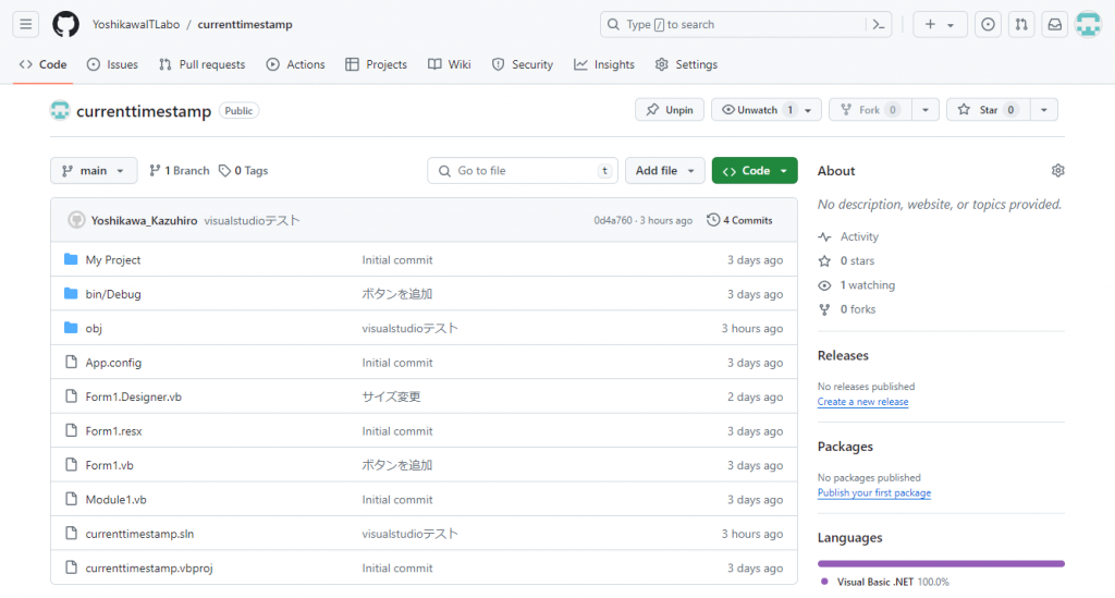 ここまでで、タイムスタンプを表示するプログラムはGitに保存されました。