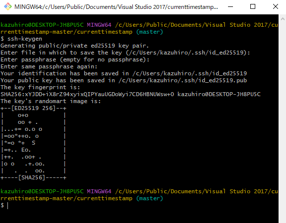 ただし、ssh-keygenで作成する際、ファイル名を変更せず、デフォルトで作成する必要があります。