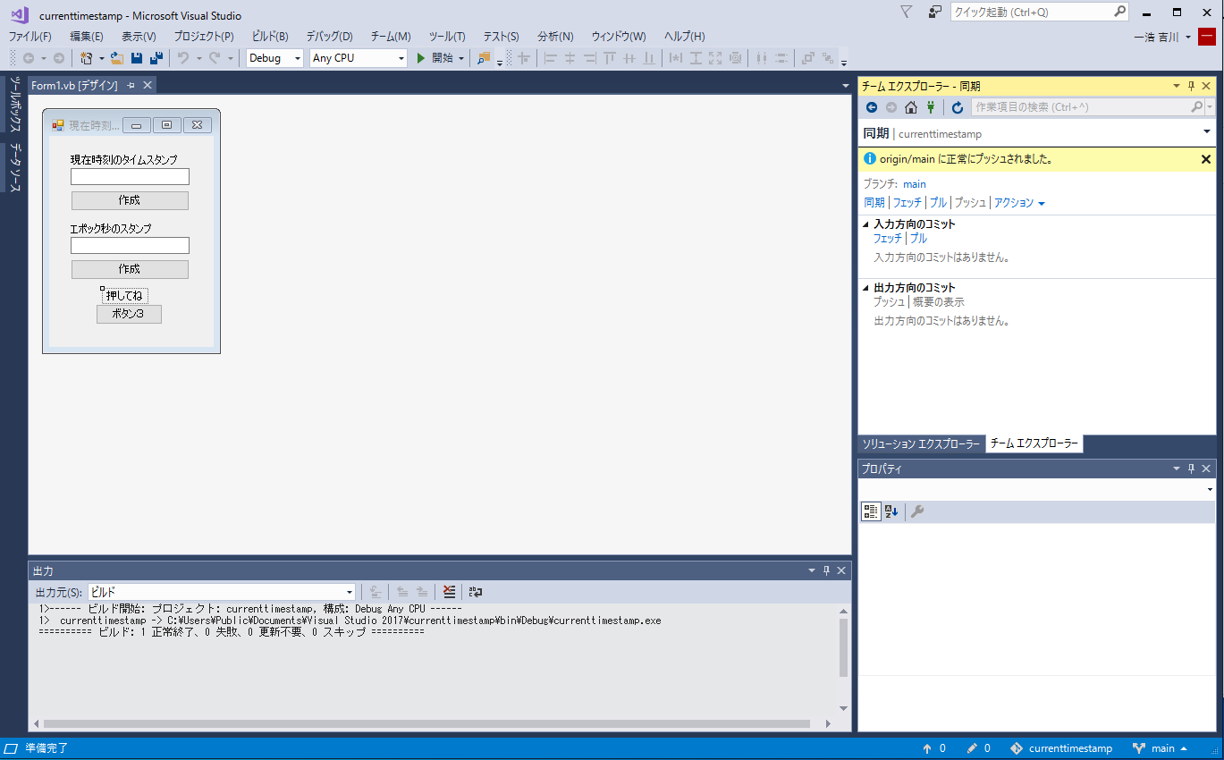 ここまでで、タイムスタンプを表示するプログラムはGitに保存されました。