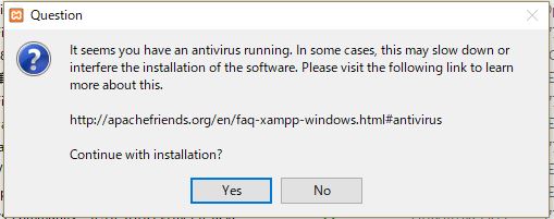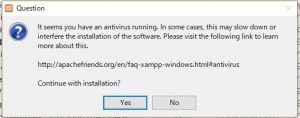 アンチウィルスソフトでインストールが遅くなるかも という内容ですが、それは構わないので、Yesでスキップします。