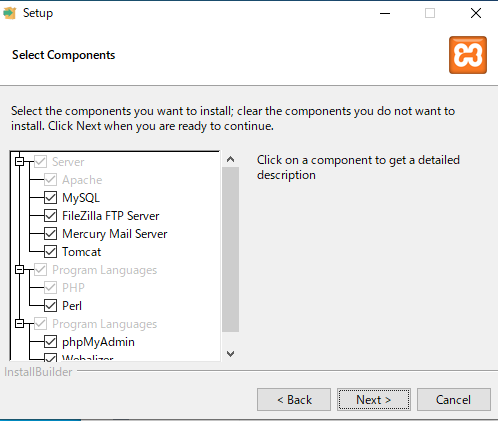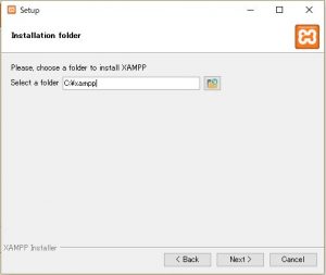 ここで先ほどのインストール先ですが、C:\Program Filesはインストールできないので、C:\xampp を指定します。