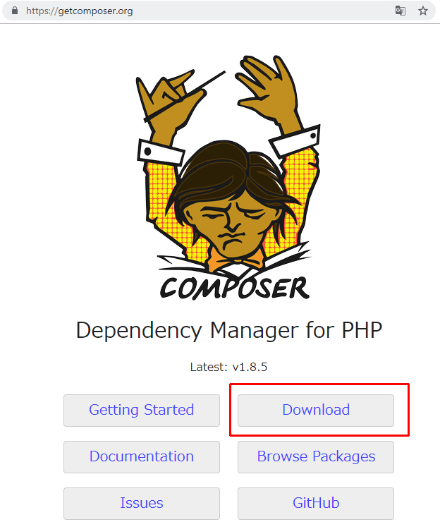 サイトから、Composer のインストーラーをダウンロードします。
