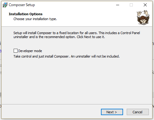 落とされた、Composer-Setup.exe を実行するだけで、Composer がインストールされます。
