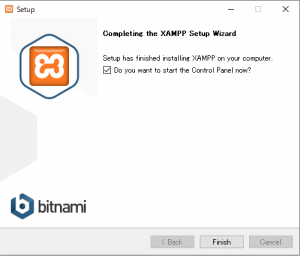 コントロールパネルを起動するにチェックが入っているため、XAMPPのコントロールパネルが立ち上がります。